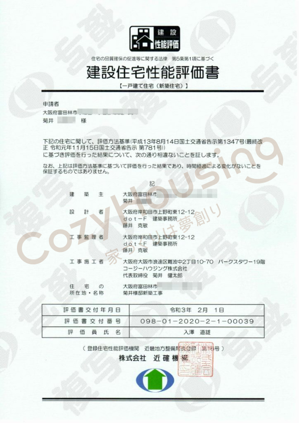 建築している住宅が、高い性能を備えているかどうかについて、中間と終わりに国土交通大臣に登録した第三者機関が厳しく検査します。設計・住宅性能が対象です。この検査は任意であり、証明を受けている住宅は多くないため、住宅の設計・性能に対する自信を客観的に測れます。