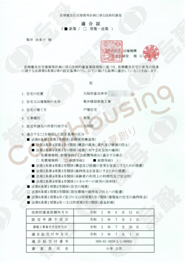 調査の結果、長期間に渡って安全・快適に住むことができると判断された住宅には、長期優良住宅適合証が付与されます。弊社の住宅は、長期優良住宅の基準を越えています。