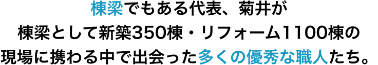 私は代表として、職人チームの力が最高になるよう、職人時代から100人近く見てきた中から、私が最高だと思えるチームをつくりました。